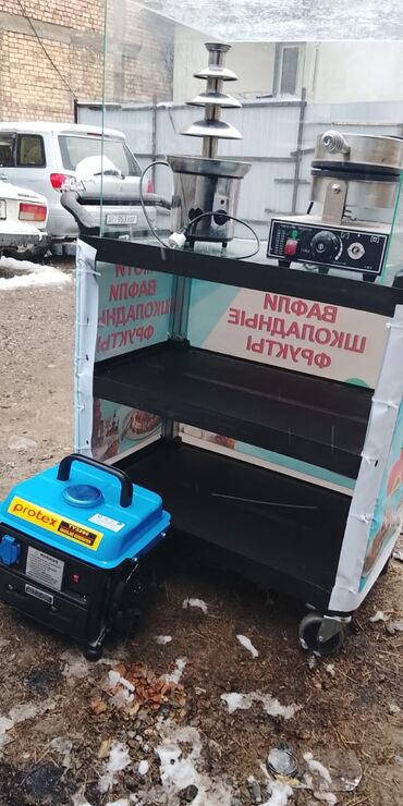 В наличииКомплект оборудования для уличной точки/кейтеринга: вафельницы + шоколадный фонтан + тележка и бензогенератор.