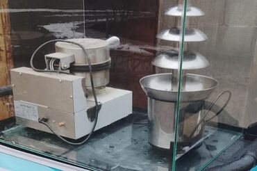 - Шоколадный фонтан из нержавеющей стали (многоярусный). Чаша и колонна из металла, электрический подогрев и насос для циркуляции шоколада.