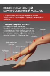 - Последовательный компрессионный массаж с 6 камерами усиливает лимфоотток и кровообращение