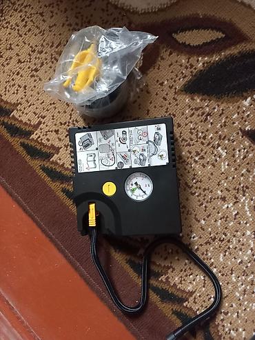 - Портативный 12В компрессор с манометром на корпусе