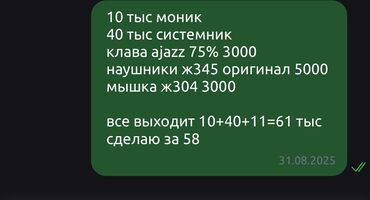 Срочно ‼️ срочно 🚨 комплект всего за 33к сомов! -монитор 27дюйм 165грц 8тысяч сомов -Тянет все онлайн игры Warface,Apex, pubg, gta V Мышка в подарок,если нужен