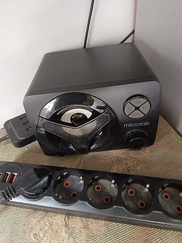 - Колонки Microlab (стерео), на фронтальной панели: кнопки управления треками/режимами и регулятор громкости.