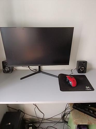 - Монитор SANC с тонкими рамками, диагональ ориентировочно 23–24", матовый экран. Настольная подставка в форме «Y».
