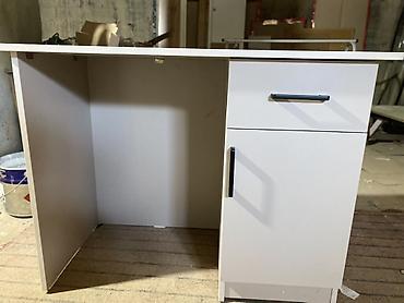 - Блок хранения справа: выдвижной ящик на роликовых направляющих + шкафчик с распашной дверцей и полкой.