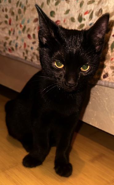 - Чёрный: глянцевая короткая шерсть угольно‑чёрного цвета, янтарно‑зелёные глаза.