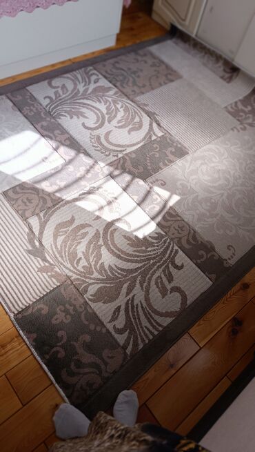 Ковры напольные, б/у, 2 шт. Размер 3*4. Цена за 2 ковра 7000 сом. Район Кызыл -Аскера. 1) Современный геометрический - Цветовая гамма: бежевый, светло‑серый, темно‑коричневый, молочный. - Рисунок:...