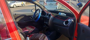 - Интерьер: тканевый салон, передние сиденья с накидками, подлокотник, чехол на руле, коврики; верхняя накладка-полотенце на панель с логотипом Matiz.