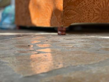 - Обивка: ворсовая ткань тёплого терракотового цвета с тиснёным флоральным узором.