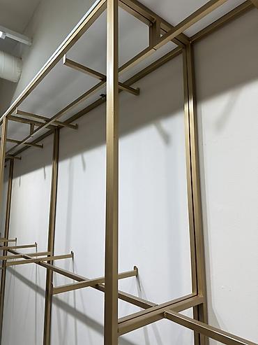 - Материал: профильная труба (металл), окраска под матовое золото/бронзу.