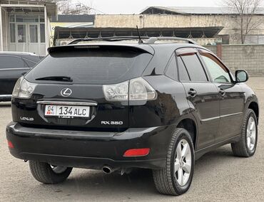 Lexus RX 350, кроссовер среднего класса. Цвет кузова — черный. Номер модели указан на пятой двери — RX 350. Логотипы Lexus спереди и сзади, фирменная решетка радиатора.