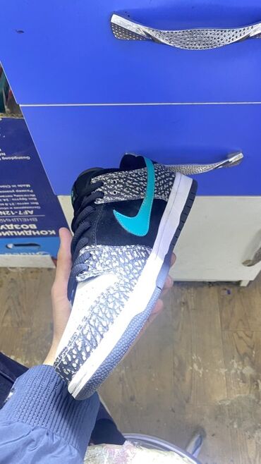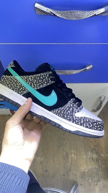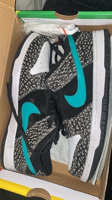 - Логотип: крупные бирюзовые Swoosh по бокам, бирюзовый логотип Nike SB на язычке.