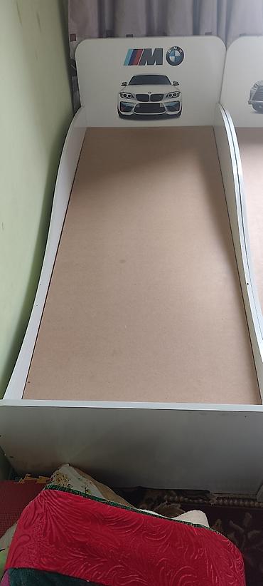 Детская кровать-машина с ярким принтом «тачек» - Размер спального места: ориентировочно 160–170 × 70–80 см (под стандартный подростковый/детский матрас). - Корпус в форме спорткара: боковые бортик...