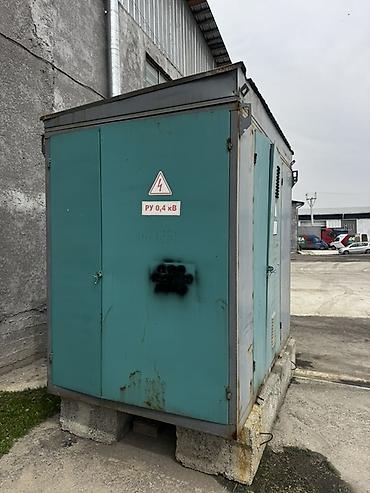- Маркировка «РУ 0,4 кВ» и знак «Высокое напряжение» на фасаде.