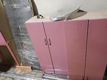 - Конфигурация: несколько секций с распашными дверцами; внутри полки для хранения посуды и продуктов.