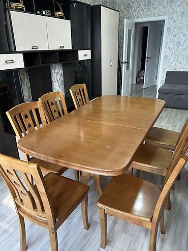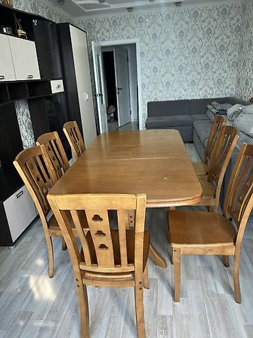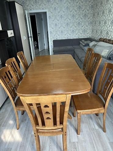 Обеденная группа из натурального дерева: раскладной стол + 7стульев