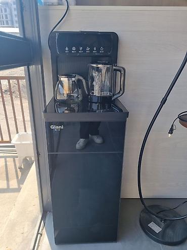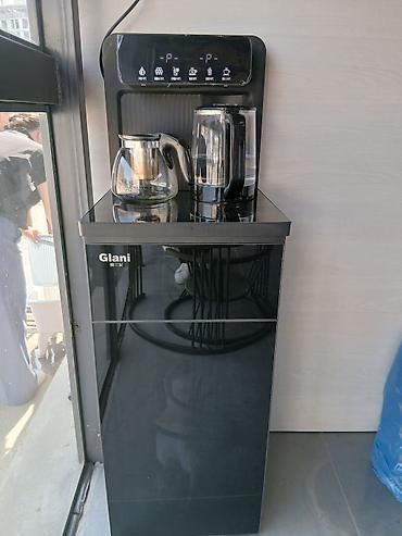 Кулер для воды с чайной станцией Glani (напольный, черный, стеклянная панель)