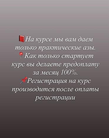 - Бронирование места: 500 сом (не входит в оплату курса, не возвращается при отказе)