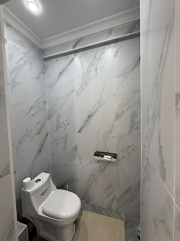 - Ламинат под дерево, натяжные потолки с карнизами по периметру.