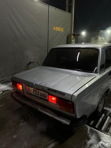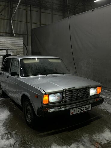 ВАЗ 2107, классический заднеприводный седан. Основные характеристики: - Кузов: 4-дверный седан, окраска — светло-серебристый/светло-серый. - Оптика: прямоугольные фары, оранжевые повторители. - Ко...