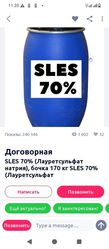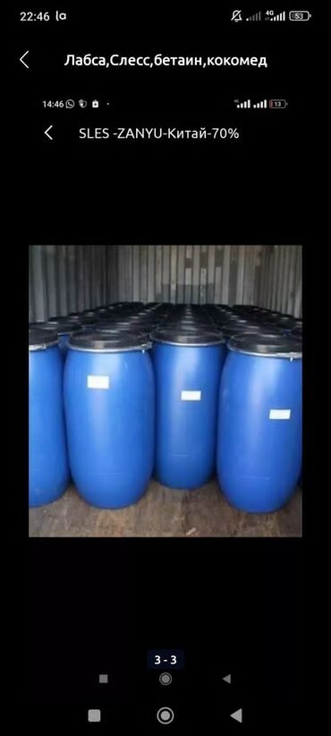 Происхождение товара на фото: SLES 70%; также видны бочки LABSA для совместного использования в рецептурах.