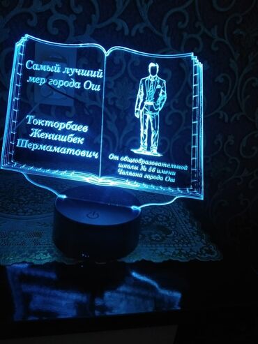 - Изготовление светящихся 3D‑ночников и табличек из акрила (пример на фото), шильдов, декора, сувениров, макетов и т.п.