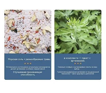 - Сменные пакеты-наполнители: морская соль + травы; в комплекте пакет с артемизией (полынью).