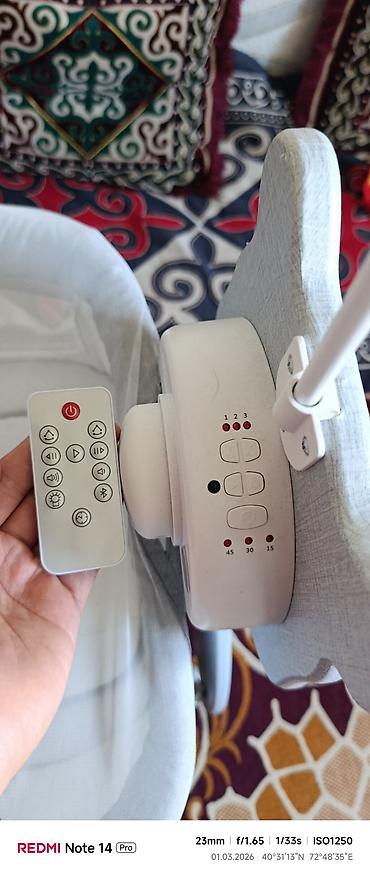 - Функции: автоматическое укачивание, музыкальное сопровождение/колыбельные, регулировка громкости, переключение треков и пауза/плей.