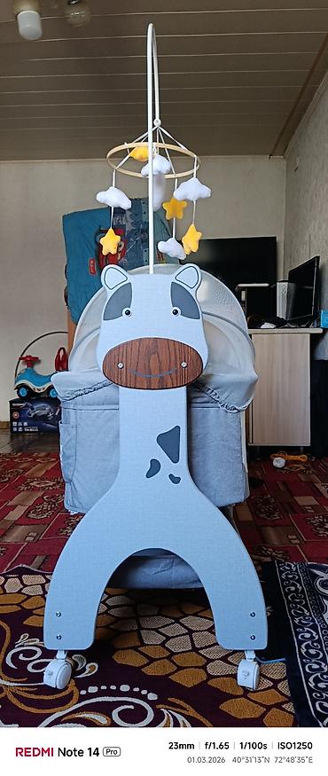 - Формат: напольная люлька на раме с колёсиками и фиксаторами.