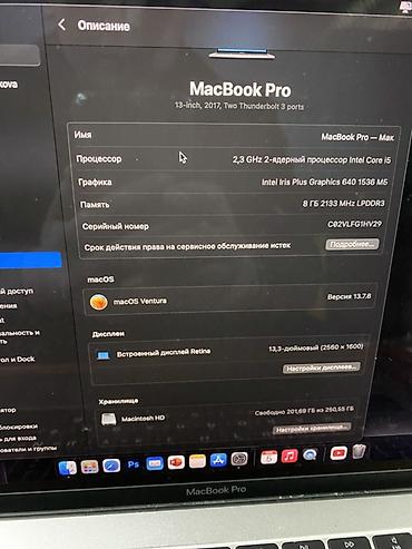 MacBook Pro 13" (2017) - Экран 13.3", Retina - Процессор: Intel Core