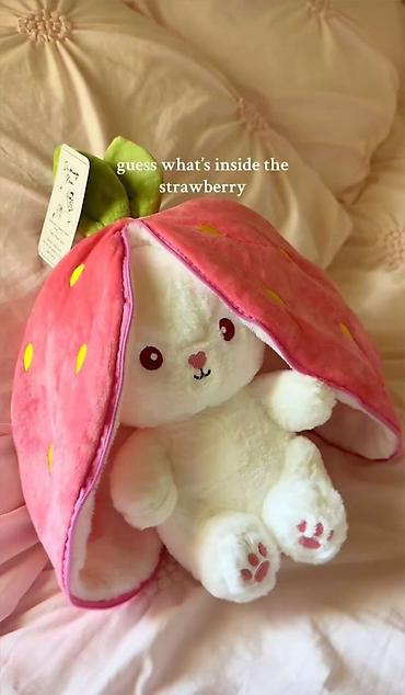 Комплектация: плюшевый кролик + мягкий чехол-клубника на молнии с подкладкой.