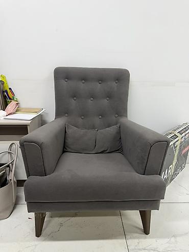 Особенности: мягкая и уютная посадка, лаконичный силуэт, тактильно приятная ткань, акцентная спинка с пуговицами, стабильные деревянные ножки.