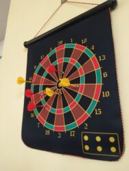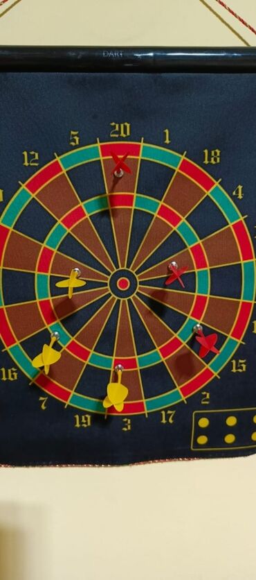 Другой цветДвусторонний настенный дартс с магнитными дротиками.