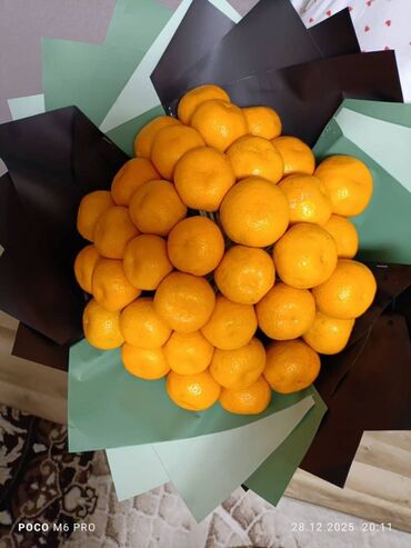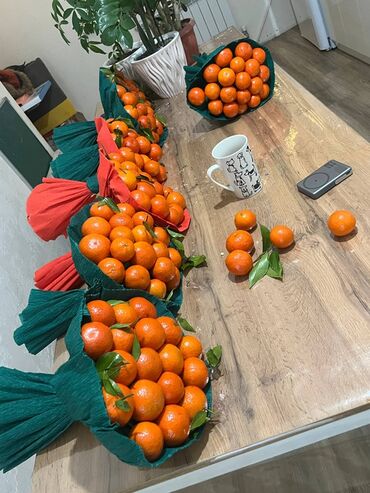 Букеты из мандаринов - Яркие цитрусовые букеты, оформленные в плотную крафт-бумагу/флористическую упаковку (зелёные и красные оттенки). - В каждом букете — отборные сочные мандарины с веточками и ...