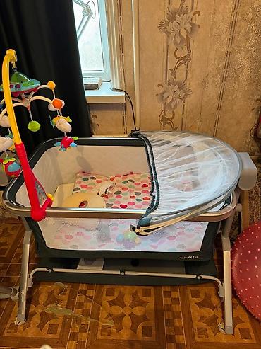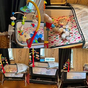 Детский комплект для ухода за малышом: Б/у детские вещи в хорошем состоянии — просто стоят без дела, поэтому продаём. 2. Стульчик для кормления — 3000 сом 2 уровня положения сиденья. Верхняя ча...
