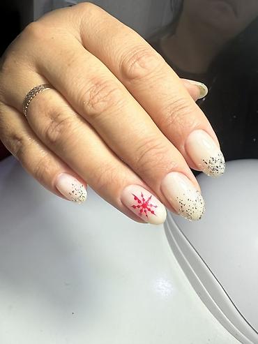 - Дизайны: блёстки, стразы, слайдеры, ручная роспись (снежинки, абстракция, волны, минимализм), акцентные ногти.