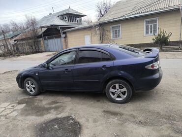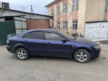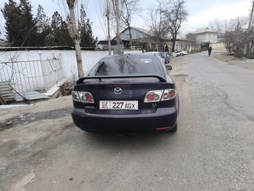 Mazda 6 седан, темно-синий цвет, правый борт/левый борт и задняя часть с заводским спойлером на крышке багажника.