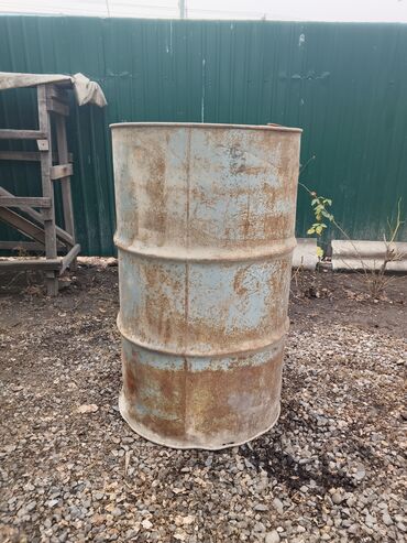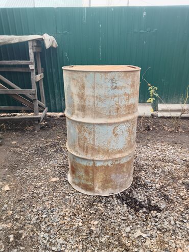 Металлические бочки 200 л цена за 1 штуку 2500сом,торг уместен - Объем: ориентировочно 200 литров каждая - Материал: сталь, оцинкованные (серебристые) и черная - Конструкция: герметичная крышка ...