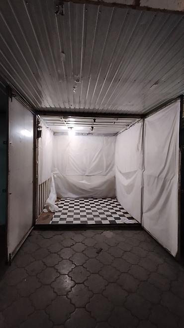 - Внутри выполнена чистовая обшивка: светлые панели/плёнка по стенам, потолок подшит металлическими листами.