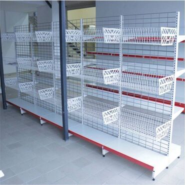 Корзины: предназначены для выкладки товара различной направленности без жесткой упаковки, выполнены из пруткового материала высотой50/ 70/ 160мм, длиной 600/ 800 мм, глубиной 200/ 300мм с возможностью установить под наклоном.