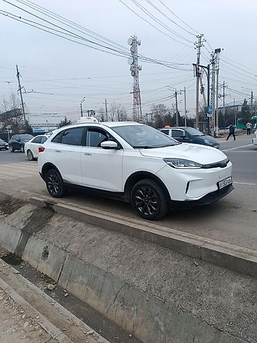 Электромобиль кроссовер, белый цвет кузова. Кузов и экстерьер: - Компактный 5‑дверный SUV с аэродинамичным дизайном - Узкая светодиодная передняя оптика, ДХО - Панорамная крыша/люк - Черные элемен...