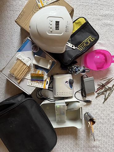 Дополнительно на фото видны аксессуары для ногтевого сервиса (лампа SUN, инструменты, кисти, контейнеры и пр.) — ориентируйтесь по изображениям, что именно включено. Отличный набор для мастера: удобное управление, стабильная тяга и совместимость с популярными насадками 2,35 мм. Made in Korea.