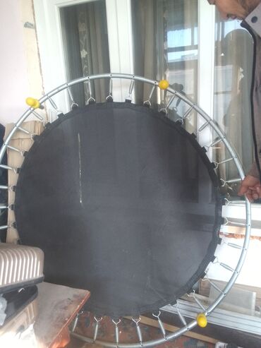 Круглый мини-батут для дома/фитнеса. Особенности: - Диаметр приблизительно 90–110 см (компактный формат для квартиры). - Прочная стальная рама. - Прыжковое полотно из плотной синтетической ткани. ...