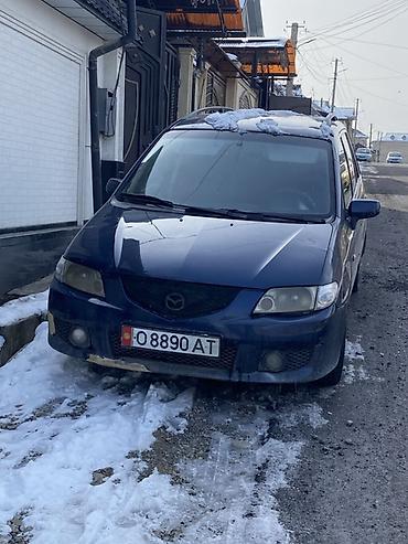 Mazda Premacy, синий универсал/минивэн. 2002 сос хороший 380 мин сом суйлошу жолу бар Основные особенности: - Кузов: 5‑дверный, рейлинги на крыше, задний стеклоочиститель, фаркоп. - Салон: темный и...