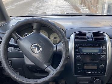 Mazda Familia/323 седан, серебристый цвет, левый руль. газ бензин об1.6 2001жылы машина жакшы айдаганга ходовой жагында бирас бар коп емес тура окугула кузовной ремонт бар атак технические жакшы К...