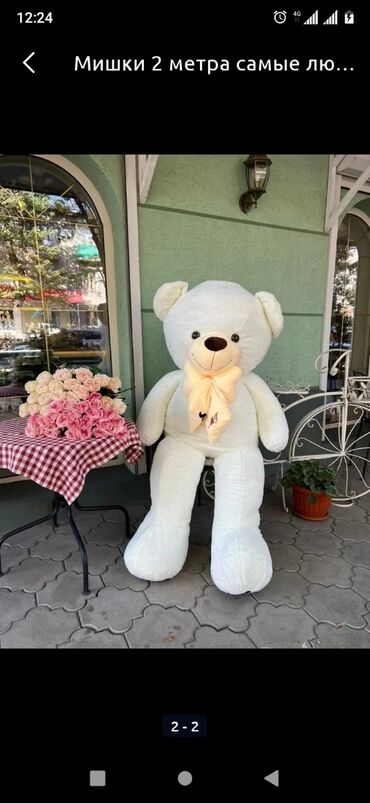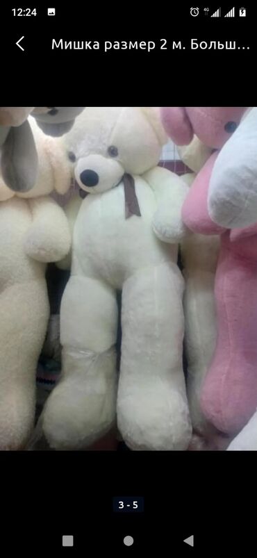 Плюшевые мишки-гиганты - Мягкие игрушки в виде медведей, разных размеров: от средних (примерно до пояса) до очень больших, почти с рост человека. - Доступные цвета на фото: бежевый, розовый и белы...