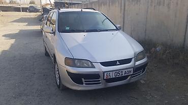 Практичный семейный автомобиль: удобная посадка, высокий потолок, трансформируемый салон, экономичный в эксплуатации. Киргизские номера. Модельный логотип Space Star на корме. Цвет — серебристый металлик.