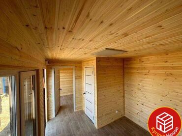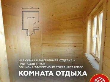 - наружная и внутренняя обшивка — имитация бруса; эффективно сохраняет тепло