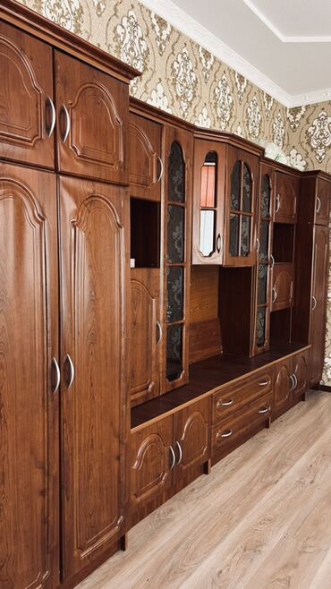 - Витринные секции с остеклёнными дверцами и декоративными вставками.