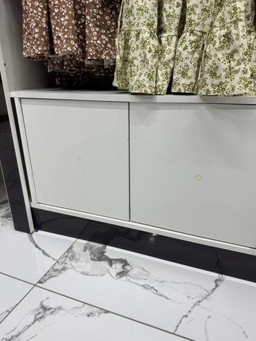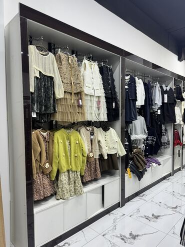 - Функционал: размещение одежды на вешалах, выкладка на полках, хранение запасов в нижних закрытых отсеках. Подходит для детской, женской и повседневной коллекции, комплектов, верхней одежды, трикотажа.