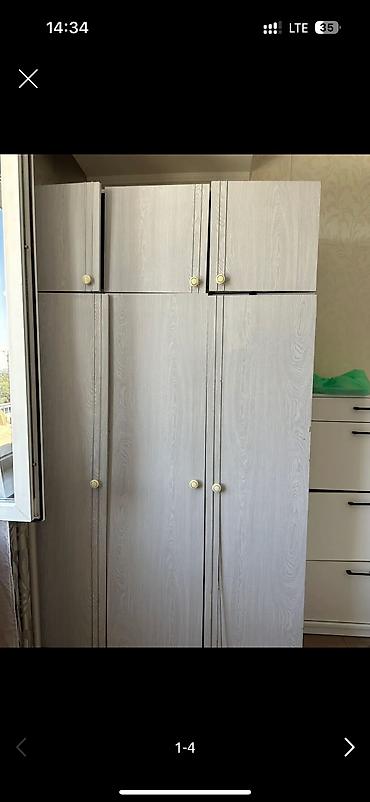 Трехдверный шкаф-купе - Цвет: белые фасады, боковины под дерево (теплый светлый оттенок). - Стиль: лаконичный, минималистичный — легко вписывается в современный интерьер. - Габариты): высота около...